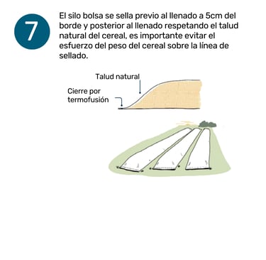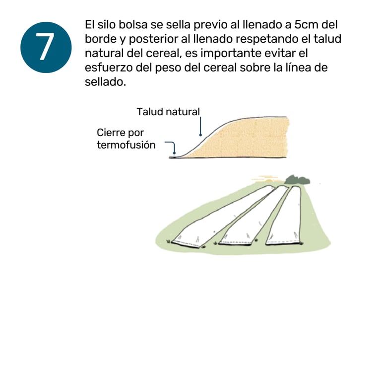 Al sellar el silo bolsa, tanto en el inicio como en el final, se evita la pérdida de metros de plástico en intentos de cierre más rústicos. Esto aumenta la capacidad de almacenaje (hasta 20 toneladas, dependiendo del cereal).